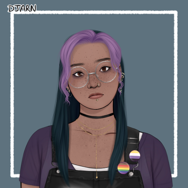 @ornitoplatypus Kel Mahoney, my character from @dkphpod - a short chubby nonbinary grunge femme with EDS attending MIT when they aren't fighting a parasitic alien invasion xD