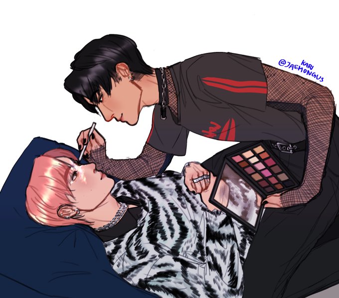 does anybody remember the meme of the girl applying makeup on top of another girl? yeah this is them but sunjay #ENHYPEN #ENHYPEN_SUNOO #ENHYPEN_JAY #ENHYPENFANART