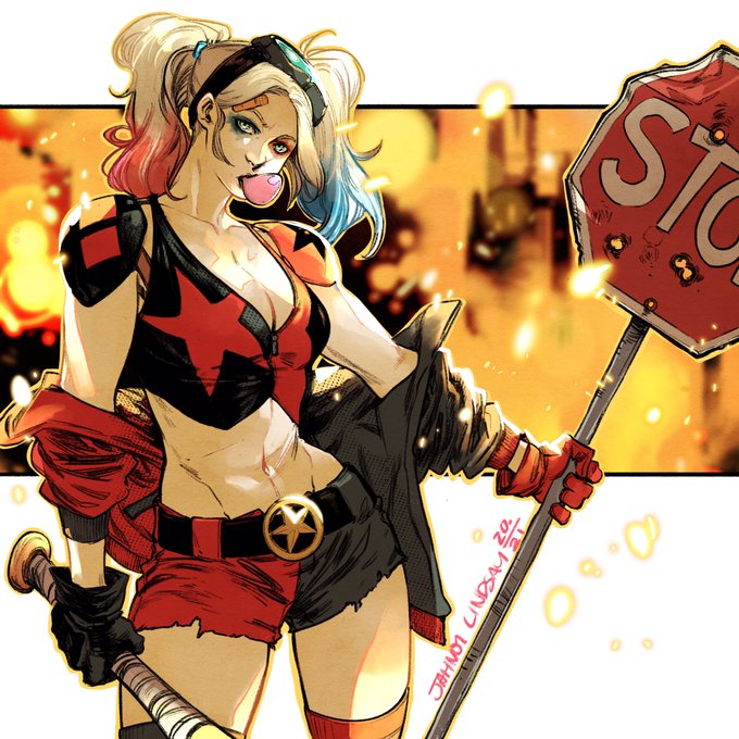 colours over a #HarleyQuinn drawing from last year 🤗