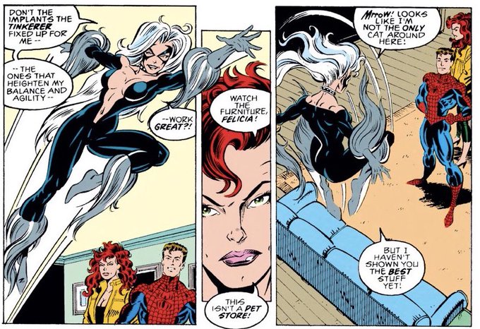 interesting to see this earlier take on Flash’s home life, although obviously this all got retconned away. and in-universe it reads as Flash preferring to tell Peter this story than anything closer to the truth