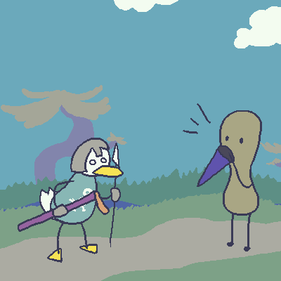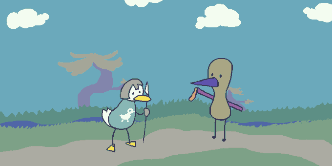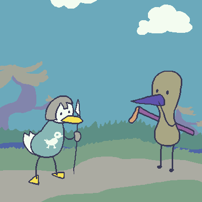 You lean in hard on how dearly they have inconvenienced your ROYAL MISSION. The duck, a mess of nerves, offers a ride.