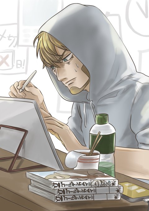 #ゴールデンカムイ版深夜の真剣お絵描き60分一本勝負 2ドロですごめんなさい!!!! ※いろいろ注意 締め切りに追われる留学生ヴァシリくん (今の自分をヴァシリにやってもらった)