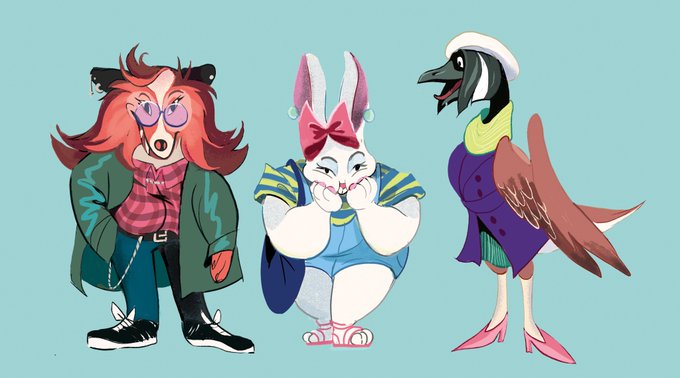 revisiting an old character design assignment - always really liked the designs i came up with but I didn't have the cartooning skills at the time