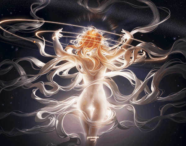 さっきのイラストの過程。軌道を描いたときフォトショの3Dツールを使った。すごく便利だった