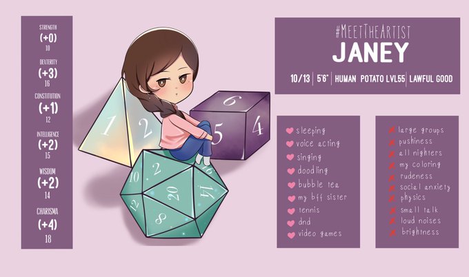 I think that STR score is wrong...in actuality, I'm probably at a 7 (-2). #dnd #MeetTheArtist