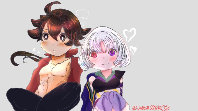 @katanawokataru うたかたさんの可愛らしい左鳳描かせて頂きました!元絵がとても素敵でタピオカを飲む鳳凰さまの姿があまりにかわいいです…!それをじっと見る右衛門ちゃんも大好きです…!描いていて楽しかったですありがとうございました!