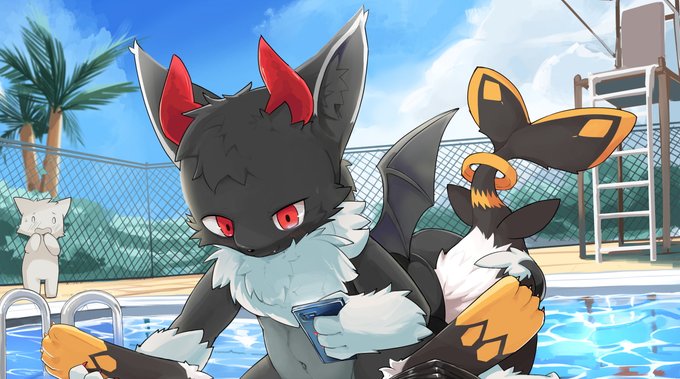 여름날 수영장에서 열사병에 걸린듯한 디르(@Blic_k)를 어떻게든 간호하려는 레코(자캐)의 모습으로 공동으로 넣은 커미션입니다(?)