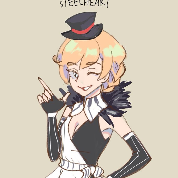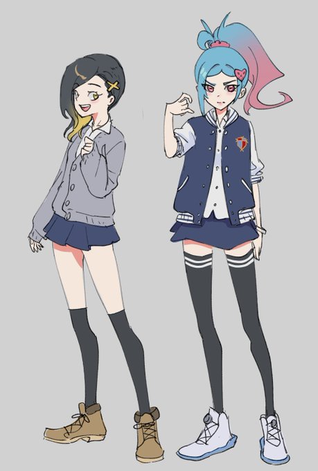 @siokohi complete ref is in the first image, but I've revised her design... she now wears a jersey jacket and has a heart-skull hairpin like the right image. Pink hoodie is optional, but I usually don't draw it anymore because it's just easier to draw without
