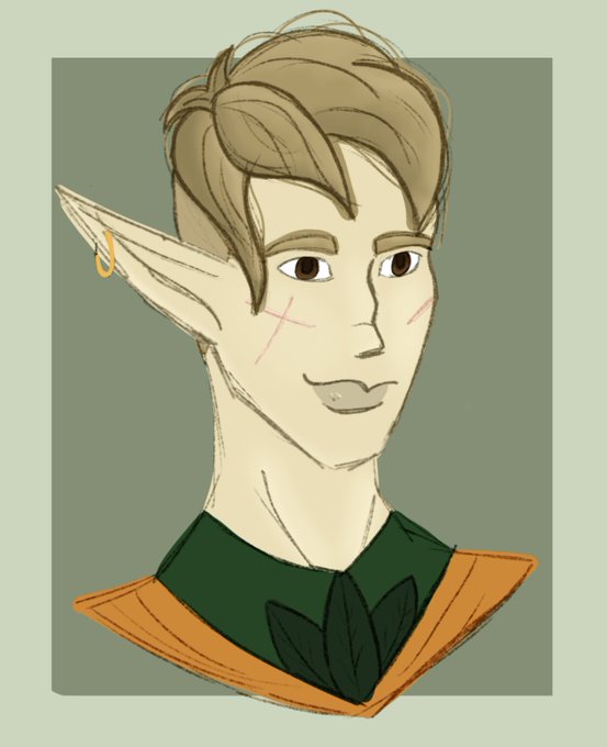 I made a thing! This good boi is Allan, a young high elf NPC from my DnD world. You can tell that he's been through a lot because of the cool scars on his cheeks, or at least thats what he would tell you. #characterdesign #characterart #ArtistOnTwitter