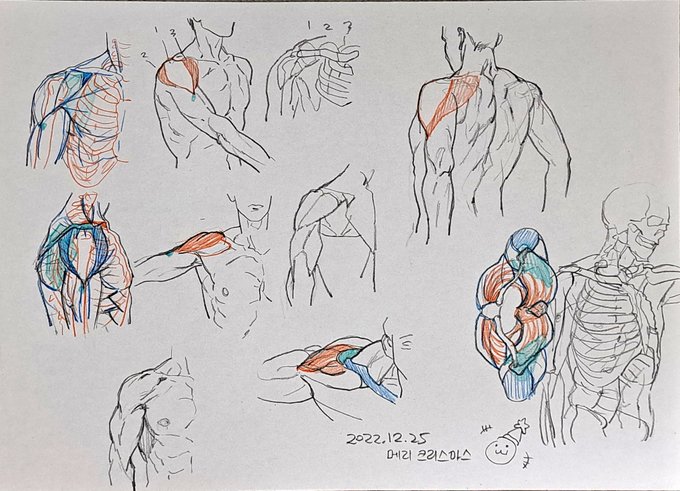 이번에는 상체 위주로 해부학 공부를 해봤습니다 ^0^