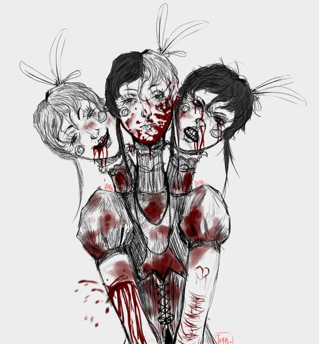 tw:bl00d She did it! Not me #Art #digitalart #surrealhorror #creepy #illustration #drawing #colors #gore