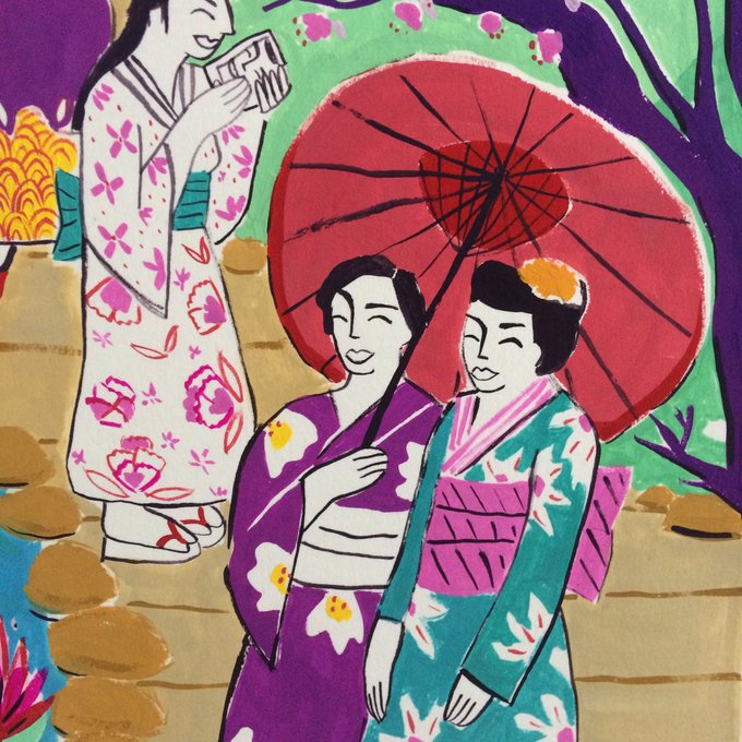 Sneak peek at the original painting from a secret project✌️it's such a great thing to get commissioned based on my Japan paintings 🇯🇵 😊