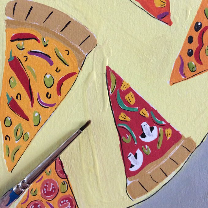 Teeny tiny hand painted pizza slices, part of a bigger illustration for a piece written by @orbyn, live on @thepooluk today ✌️🎨🍕