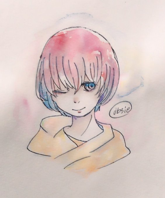 初めて水彩画でペン入れした( ˇωˇ )髪の毛の色合いに満足