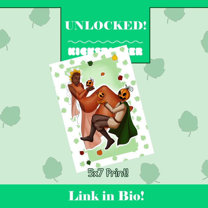 Kickstarter is LIVE! Here is Fall Spirit and a cute little pumpkin expressing their joy! They're part of a bigger print design that will be shared once unlocked. 😉
