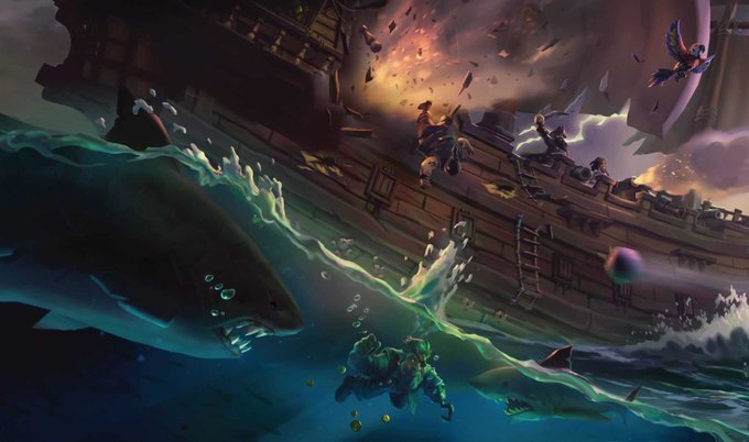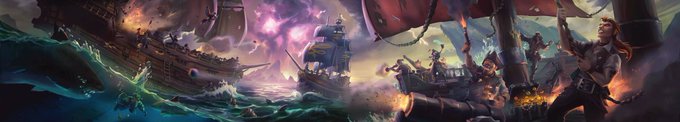 Turns out today is the 4th anniversary of the release of @SeaOfThieves! Great to see that the game is going strong with an ever-growing fan base of die hard cutthroats. Here’s one of the pieces of key art I did back in the day, originally meant for a 360 panorama early on!