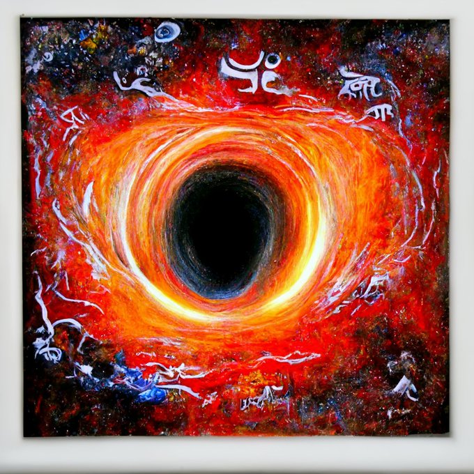 Prompt: Sanatan a dharma kardashev type 3 civilization gorging up supermassive black hole, supermassive white hole.
