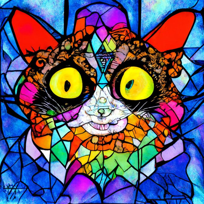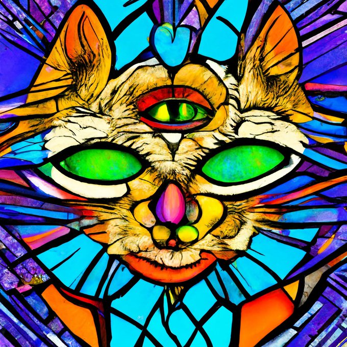 Prompt: psychedelic stained glass vector portrait of a cat by louis wain