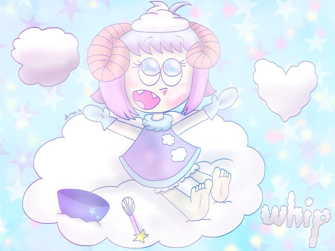 先刻にペンで描いたホイップちゃんをいよいよデジタルで彩って描いた!自分の手作りフワフワホイップクリーム雲は最高だよぉ〜 💕