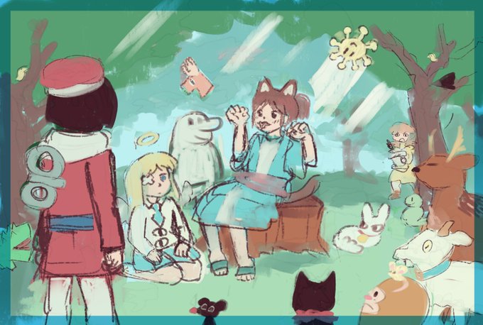 I'm working on a piece for @NichiZine_RPG, a Nichijou/CITY/Helvetica Standard-themed charity zine! Do you recognize all the creatures (and the overall art reference to another series)?