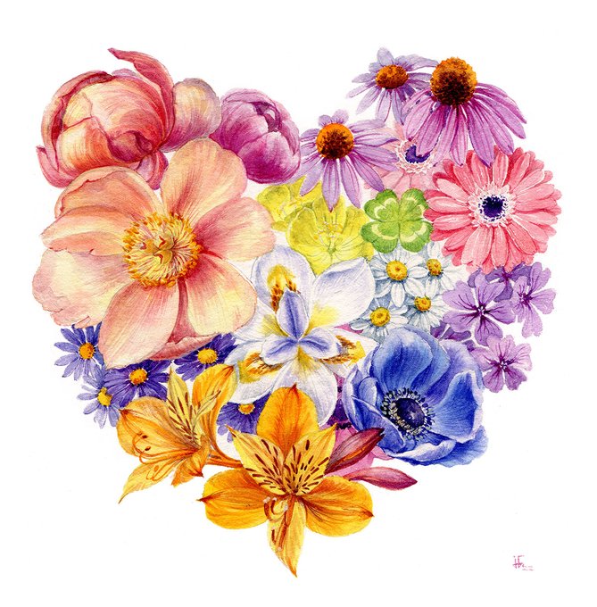 Explaining why I painted this would take more than a tweet. But for all you who need a bit of solace, here's a flower heart with all the symbols of health, good fortune and protection. You can download it for free: https://t.co/PSJY75sQzZ