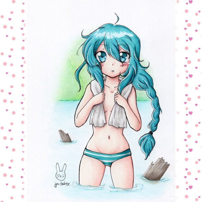 #anime #manga #originalcharacter #drawing #kawaii #loli #loligirl #laculrosu #girl #かわいい #可愛い #lake #towel #turquoise
