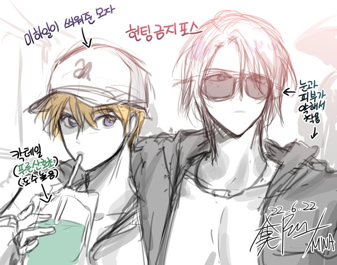 낙서 리퀘로 휴양지 요한과 썸머 미하일과 요한이 같이 들어와서 그냥 휴양지 간 미하일과 요한 그림.