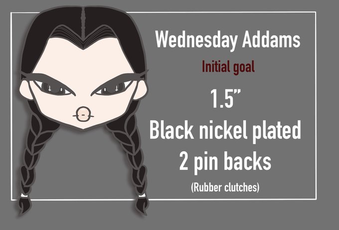 Ehhhh soooooo I redid the Wednesday pin design and I like this better.... kinda glad the Kickstarter hasn’t taken off much so I can update it... 🙃 gonna update it tomorrow! ;)