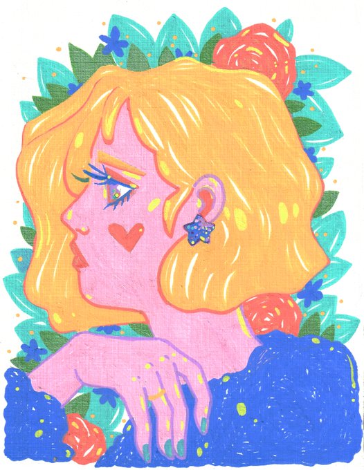 Here's the other piece to accompany my last #posca piece <3 I had even sized pieces of paper to make these on so I made a set. :'-) Also you can peep her earrings yes I 110% drew her with my stardust earrings.