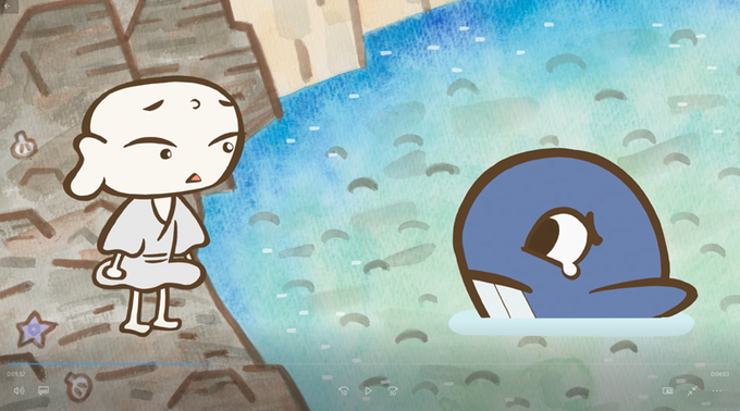 この島が舞台の民話「クジラのお礼まいり」がアニメ化されました。