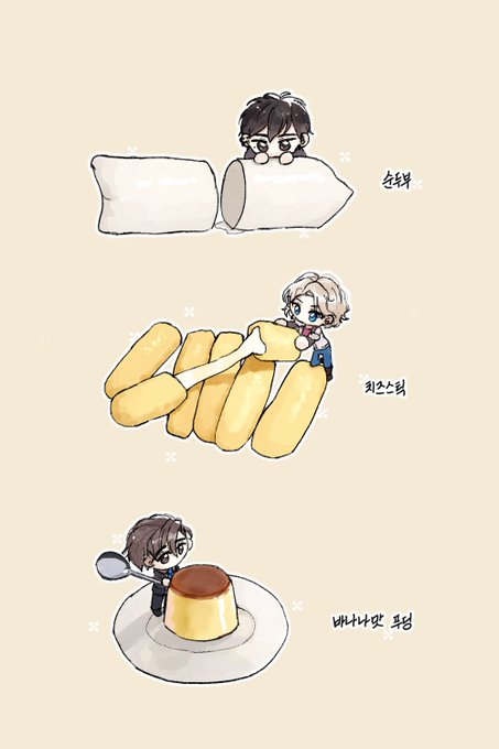 순두부와 치즈스틱과 바나나맛 푸딩