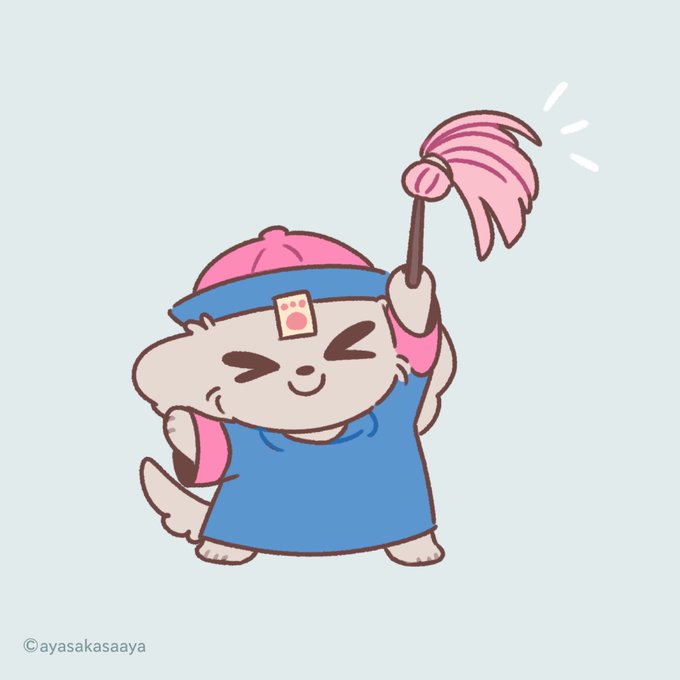 ぽんぽん ぱたぱた おそうじすると きもちもスッキリ! #キョンシーズー #1日1絵 #イラスト