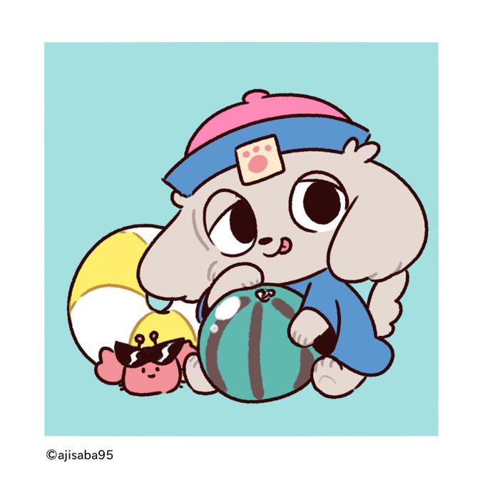 かにさんといっしょに おもちごっこを してたの もちもち #キョンシーズー #おもちごっこ #1日1絵 #あつい