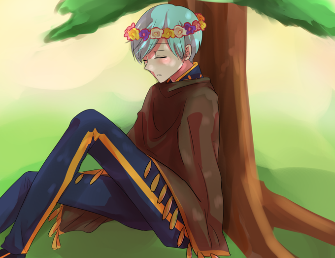 #一期一振版お絵描き60分一本勝負 【お題:幸福】 寝てる兄に弟の粋な計らい・・・・起きたときに照れ照れのいち兄が見たいっ