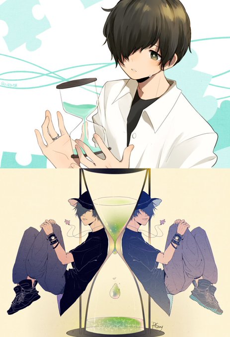 #芝健 中国Tiaraの友達と一緒にコラボの絵を描きました!今回の絵は全部芝健さん( @antsa_www )ですよ! テーマは——砂時計、涙、パズル 皆さんお疲れ様です!!!コメント欄にオリジナルを載せます!٩(๑òωó๑)۶