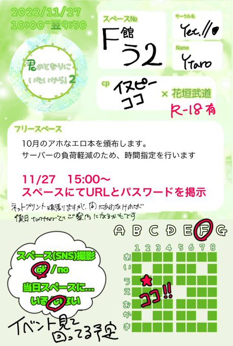 #君とな1127 【F館う2】にてスペースいただいております。🐯🕳さんにて成人向けの本をシークレット通頒いたします。 ご都合が合えばよろしくお願いいたします。