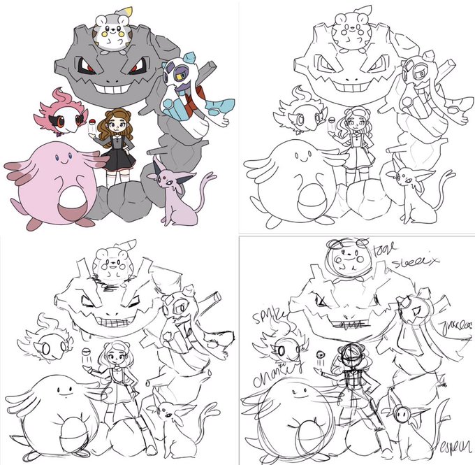 it’s been too long since i’ve drawn a pokemon team and i’ve been playing so much showdown and let’s go recently that it just made sense 😀💖 i included progress pictures and in the replies i’ll add my other two attempts from the last few years!