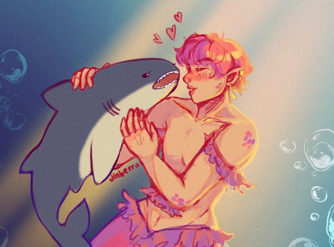 bringing back merjin from my aquarium staff jinkook au since it’s mermay!!!! 🌊🧜🏻♂️🦈