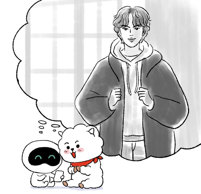 8コマあるのでスレッド見てね ジンさんに会いたすぎて遂に幻を見てしまうRJとウット #btsfanart #btsjin