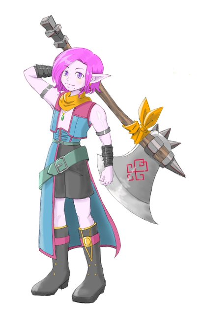 今回の突発落書き会、新規絵書いてる時間なくてかけなかったのでタグは付けないけど、ちんたの愛用武器はボルテージアックスよぉ! 理由:描きやすいから