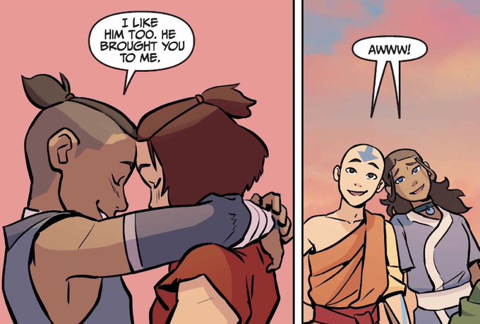 every season of avatar the last airbender ends with a hug between katara and aang, their friendship is such an important part of the show and that’s why the hug before the finale kiss is so beautiful