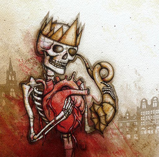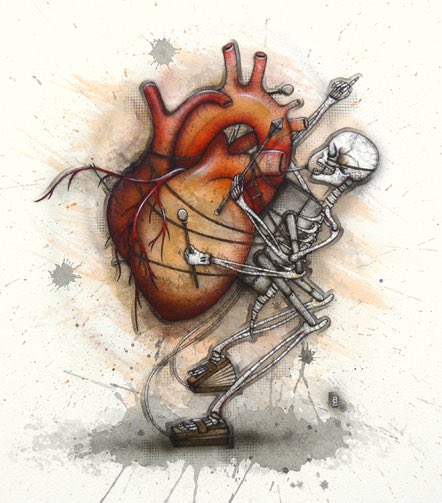 人間の臓器を楽器に見立ててスケルトンやカエルに演奏させたイラストレーションアート by Kaitlin Beckett。大太鼓カワイイですね(^-^)♪ #人体模型