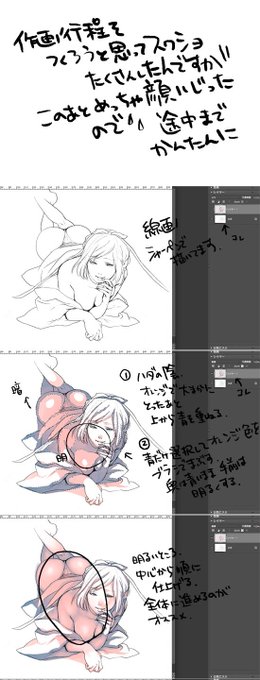 ものすごくざっくりとしたメイキングです。 元絵を濃いめに塗って光を当てるくらいの仕上げで、加工はあんまりしません。