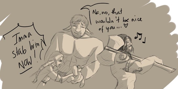 HIGHLIGHT : when the rogue is done with the barbarian’s bs... but the other gentle barbarian is against violence. #dnd #partyquarrel #doodle