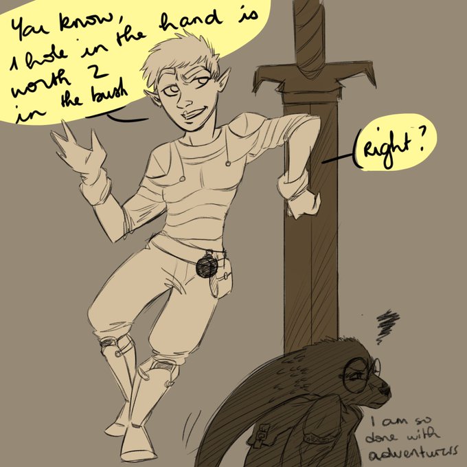 A really quick doodle. Party quarrels are my favourite part of d&d. BY FAR. first time DM, got those 3 misfits on a joyful ride filled with inter-racial prejudice and random pranks. LOVE #DungeonsAndDragons #doodle