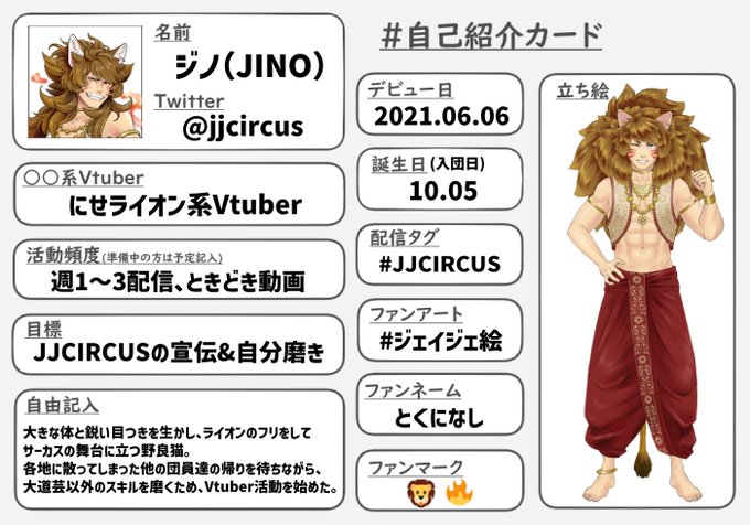 ②ライオンのフリをして大道芸担当としてサーカスの舞台に立つ野良猫。団員不在で舞台に立てない間、大道芸以外のスキルも磨くために、にせライオン系Vtuberとして活動中!