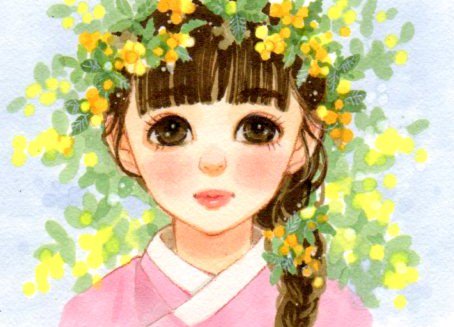#ミモザの日 ミモザまみれの女の子を描いてみました。