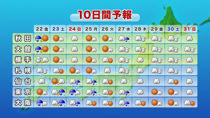 詳しくは、今夜のAAB「トレタテ!お天気」で週末の独自予報と併せてお伝えいたします。