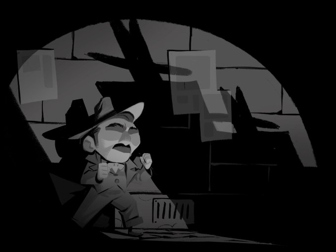 Really early on I made these pieces as a way to figure out the tone of the story and trying to synthesize the "noir" aesthetic in this more cartoony art style. They were fundamental in getting everyone in the same page.
