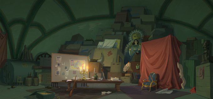 Because most of the narrative sections are narrated and the characters done speak, we wanted to make sure that we added as much visual storytelling as possible in the design of the locations. From props to posters, all expand the personalities of the characters that live in them.